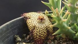 Our new hybrid obtained from Stapelia obducta. The stems are 10-15 cm long by 2 cm broad, of a glaucous green colour. The flowers, with a...