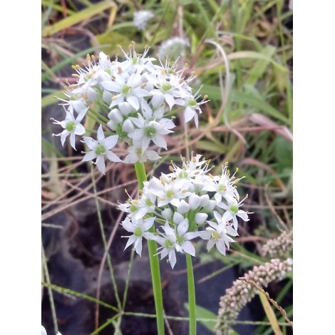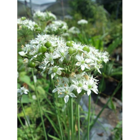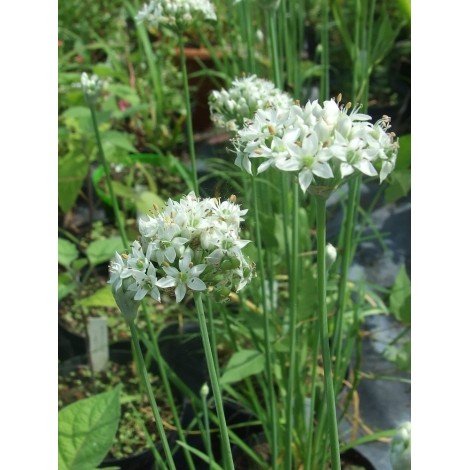 Also called Chinese garlic, it is both an edible and an ornamental species. The plants develop from an elongated rhizome on which the small bulbs are inserted from which the ribbon-like leaves (deciduous in cold climates), about 30 cm long, develop. In summer, the 25 to 60 cm long floral scapes develop, exceeding the leaves, ending in a dense umbel of star-shaped white flowers, very ornamental. The leaves are used like chives for both cooked and raw dishes and have a more delicate aroma. Native to the Mongolian-Siberian steppes and northern China. It likes deep, humus-rich soil and a sunny or partial shade location. Hardy. It adapts to the Mediterranean climate but can become a weed, it is therefore advisable to cut the floral scapes once they have withered to avoid sending the fruits to seed. 14 cm pot plant.