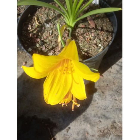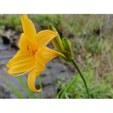 Specie accestente con rizomi sotterranei. Foglie lineari-lanceolate, lunghe 50-60 cm. Scapi fiorali eretti, ramificati, portanti numerosi fiori campanulati a 6 tepali di colore giallo intenso. Come indica il suo nome, i fiori durano un solo giorno, ma si aprono in successione giorno dopo giorno. Specie nativa della Russia orintale, Corea, Cina nord-occidentale e Giappone. Cresce nei prati e sui pendii montani. Terreno profondo, umido (specialmente in estate) e ricco di humus. Posizione soleggiata o semi-ombreggiata e annaffiature abbondanti in estate. Rustica. Pianta in vaso o rizoma (inverno).