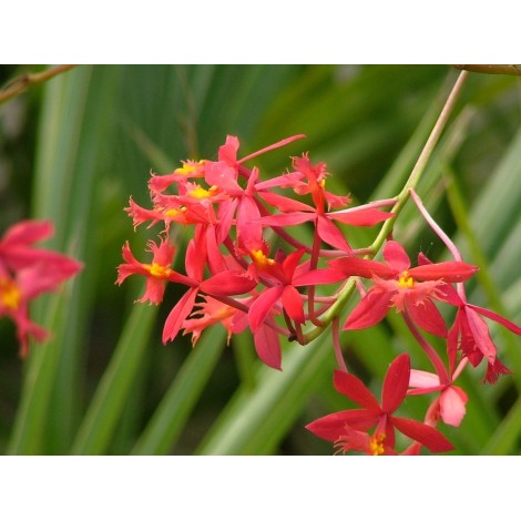 Orchidea epifita non formante pseudobulbi. Lunghi fusti sottili, striscianti o ricasdenti dotati di radici aeree. Foglie avvolgenti il fusto, lineari-lanceolate. Infiorescenze ramdificate costituite da numerosi fiori molto eleganti di colore rosso-aranciato con 6 tepali lanceolati e labello sfrangiato. Cresce sugli alberi nelle foreste del Messico, dell'America centrale e meridionale. Si coltiva nella corteccia mantenendola costantemente umida, ma più asciutta in inverno. Posizione ombreggiata. Non rustica. Talea con qualche radice.