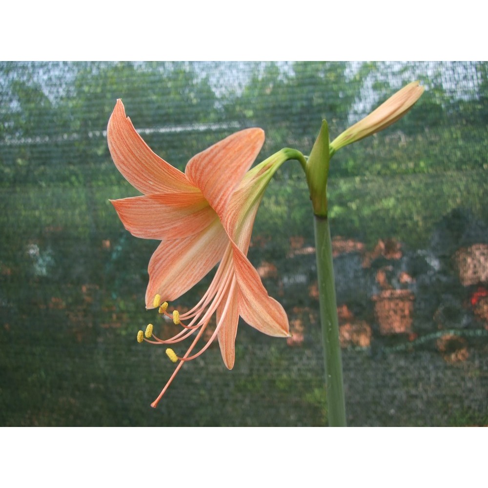 Specie bulbosa decidua in inverno. Foglie nastriformi, lunghe fino a 40 cm. Scapo fiorale ungho 30-45 cm portante fino a 4 fiori cmpanulati di colore rosa-arancio con vanture più scure, del diamenro di 8-9 cm. Questa specie presenta una vasta distribuzione che va dai Caraibi all'Argentina. Predilige un terreno ben drenato e una posizione ombrosa. Annaffiature regolari durante il periodo vegetativo da sospendere a partire da novembre fino ad aprile. Non rustica. Pianta in vaso 12 cm.