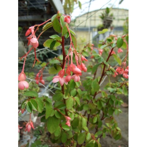 Ibrido orticolo ottenuto dall'incrocio tra Begonia fuchsioides e Begonia foliosa. Fusti succulenti eretti, leggeemente penduli, lunghi fino a 50 cm. Foglie piccole, ovate, disposte in due serie. Fiori rosa in infiorescenze pendule all'apice dei fusti. Terreno leggermente drenato e posizione ombreggiata. Annaffiature regolari durante l'estate ma diradate in inverno. Non rustica. Pianta in vaso 7 cm.