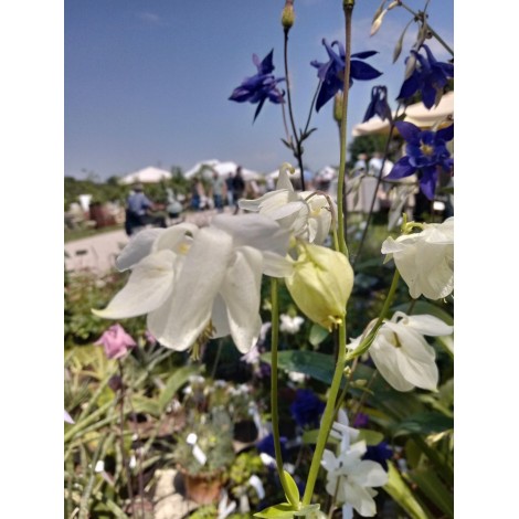 Ibridi orticoli di Aquilegia vulgaris. Erbacea perenne decidua in inverno , alta fino a 1,2 m. Fusti leggermente ramificati con foglie tripartite le cui foglioline hanno 3 lobi arrotondati. Fiori in infiorescenze apicali, penduli, semplici o semidoppi, di colore che varia dal bianco al rosa fino al blu. Rustica, predilige posizioni semi-ombreggiate e si adatta a gran parte dei terreni (ad eccezione di quelli sabbiosi e di quelli costantemente umidi).