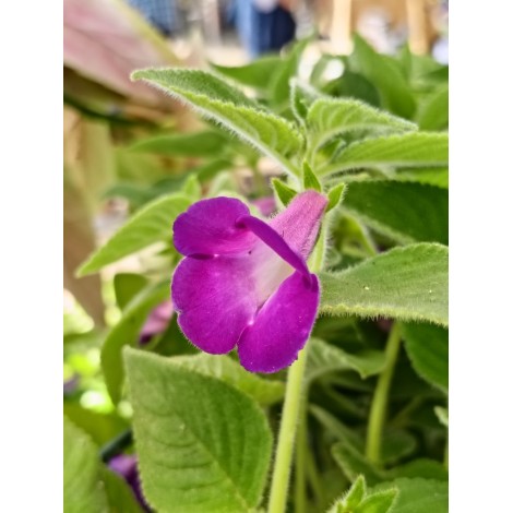 Specie rizomatosa a riposo vegetativo invernale. Rizomi bianchi, scagliosi. Foglie ovate, crenate sul margine, vellutate, di colore verde chiaro. Fiori imbutiformi di colore blu-violaceo con gola bianca, molto vistosi e abbondanti. Specie nativa del Messico nord-occidentale, cresce nelle foreste. Terreno leggermente drenato e ricco di humus. Posizione ombrosa. Annaffiature regolari da aprile a novembre: evitare di far asciugare il terriccio durante la vegetazione altrimenti la pianta va in stress e fiorisce poco o non fiorisce affatto. Terreno asciutto in inverno (bagnare solo una volta al mese). Non rustica. Pianta in vaso 14 cm.