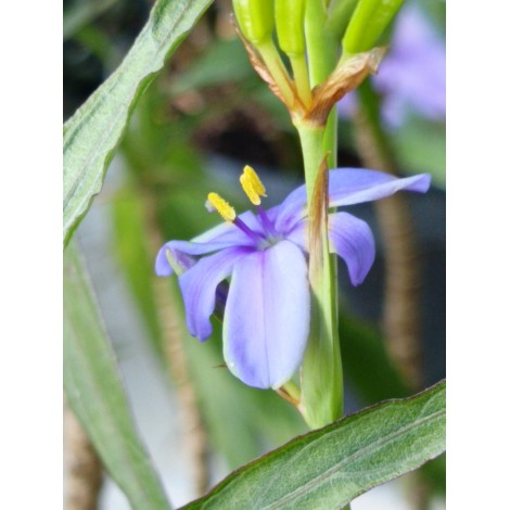 Geofita rizomatosa, accestente. Foglie lineari-lanceolate, con venature parallelinervie in evidenza, lunghe fino a 50 cm per 8-12 mm di larghezza. Infiorescenze ramificate, notevolmente superanti le foglie portanti numerosi fiori azzurri a 6 tepali. Ogni fiore dura solo un giorno, ma ogni giorno se ne aprono sempre di nuovi. La fioritura avviene in primavera (aprile-maggio). Specia nativa del Sud Africa (Limpopo, Mpumalanga e KwaZuluNatal) e a nord fino alla Tanzania. In natura cresce negli arbusteti e nelle foreste ma anche nei terreni disturbati, nonché sugli argini e sui terreni rocciosi e spogli. Semirustica. Si adatta a tutti i tipi di terreno purché drenati e preferisce una posizione soleggiata o semi-ombreggiata. Annaffiature regolari in estate, diradate in inverno. Pianta i vaso 16 cm.