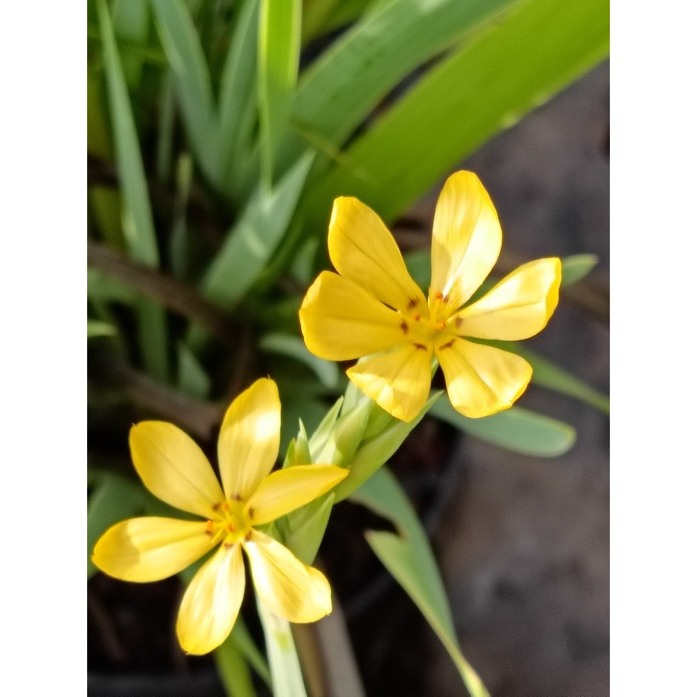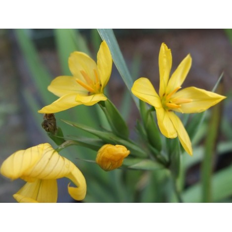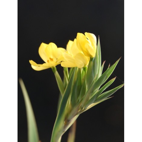 Foglie nastriformi lunghe fino a 50 cm, sempreverdi, di colore verde-glauco. Infiorescenze in estate costituire da numerosi fiori gialli a 5 tepali che si aprono nel pomeriggio. Molto fiorifera e facile da coltivare.