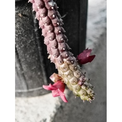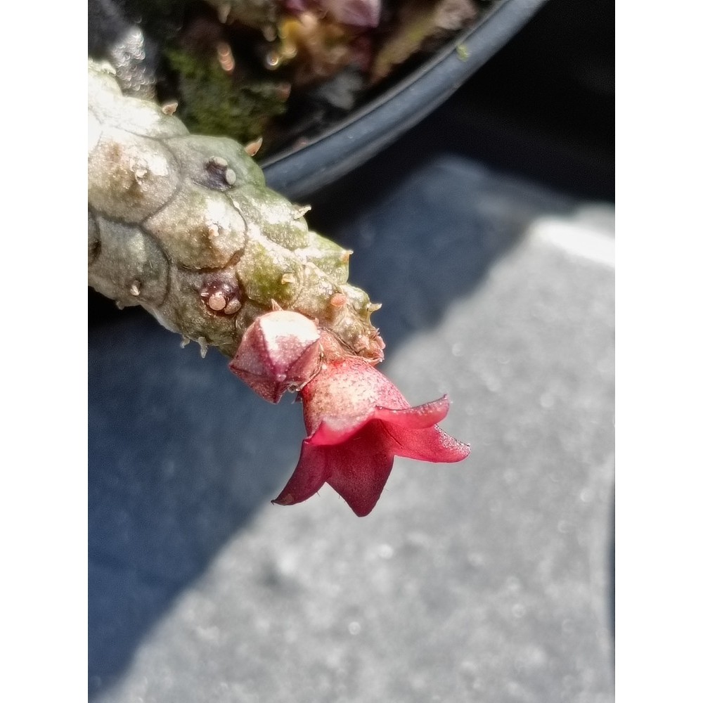 Fusti striscianti, sottili, con tuberocli arrotondati. Fiori campanulati, apicali, del diametro di 0,5 cm, di colore rosso mattone.