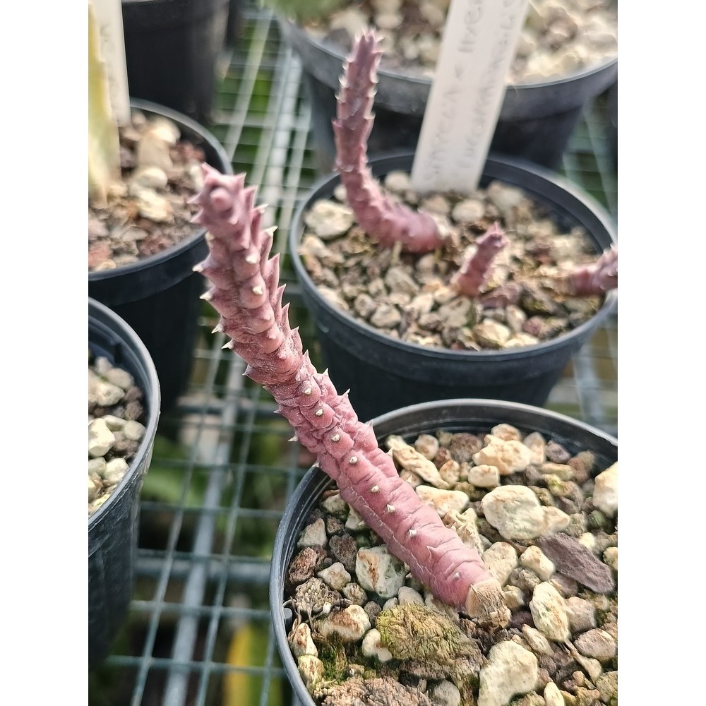 Ibrido orticolo tra Stapelia maculosa e Stapelia 'Trifida'. Fusti eretti a sezione quadrangolare, dentati. Fiori a stella, di colore rosso-porpora scuro, lievemente macchiati di bianco, leggermente rugosi. Annulus appiattito, rosso chiaro. Substrato ben drenato e posizione in mezz'ombra. Tenere asciutto in inverno e annaffiare ogni 10-15 giorni in estate.