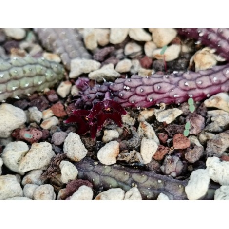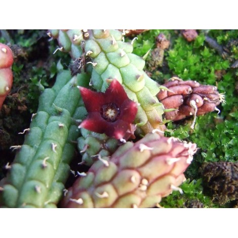 Fusti striscianti e ramificati, leggermente tubercolati, parzialmente sotterranei. Fiori apicali, del diametro di 15 mm, singoli o in gruppi di 2, a forma di coppa con 5 lobi di colore rosso scuro, ciliati sul margine. La fioirura avviene in estate ma si può protrarre per gran parte dell'autunno.