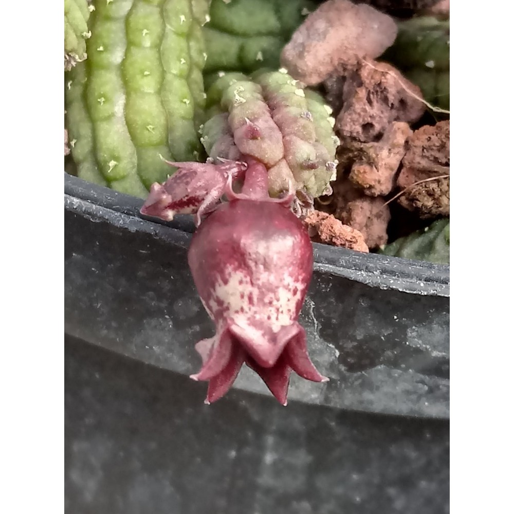 Fusti striscianti o leggermente eretti, ramificati, con tubercoli poco accennati, di colore verde-glauco. Fiori semi-apicali, della lunghezza di 8 mm, urceolati a sezione circoalare, di colore rosso con lievi maculature biancastre, dotati di 5 lobi che si aprono leggermente all'apice. la fioritura avviene in estate e in autunno.
