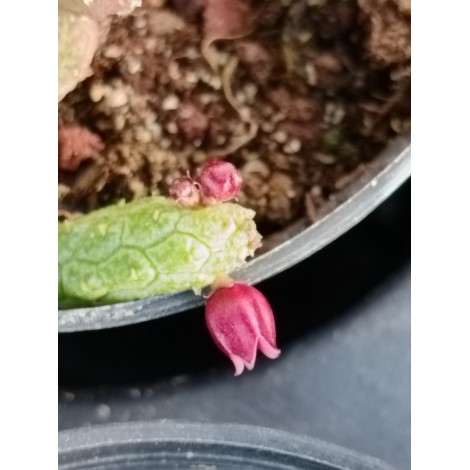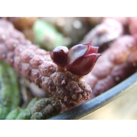 Fusti striscianti e ramificati, parzialmente sotterranei, con tubercoli appiattiti e rossastri che ricordano la pelle di un serpente. Fiori semi-apicali, rossi, piccoli ed urceolati, con una piccola apertura all'apice. I fiori compaiono in estate e in autunno.